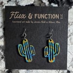 Wood Dangle Cactus Earrings with Poured Paint Detail #215