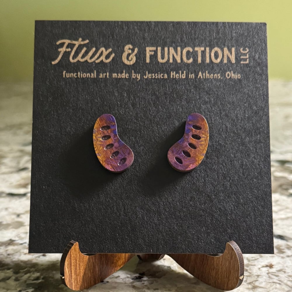 Wood Pawpaw Post Earrings with Poured Paint Detail #209